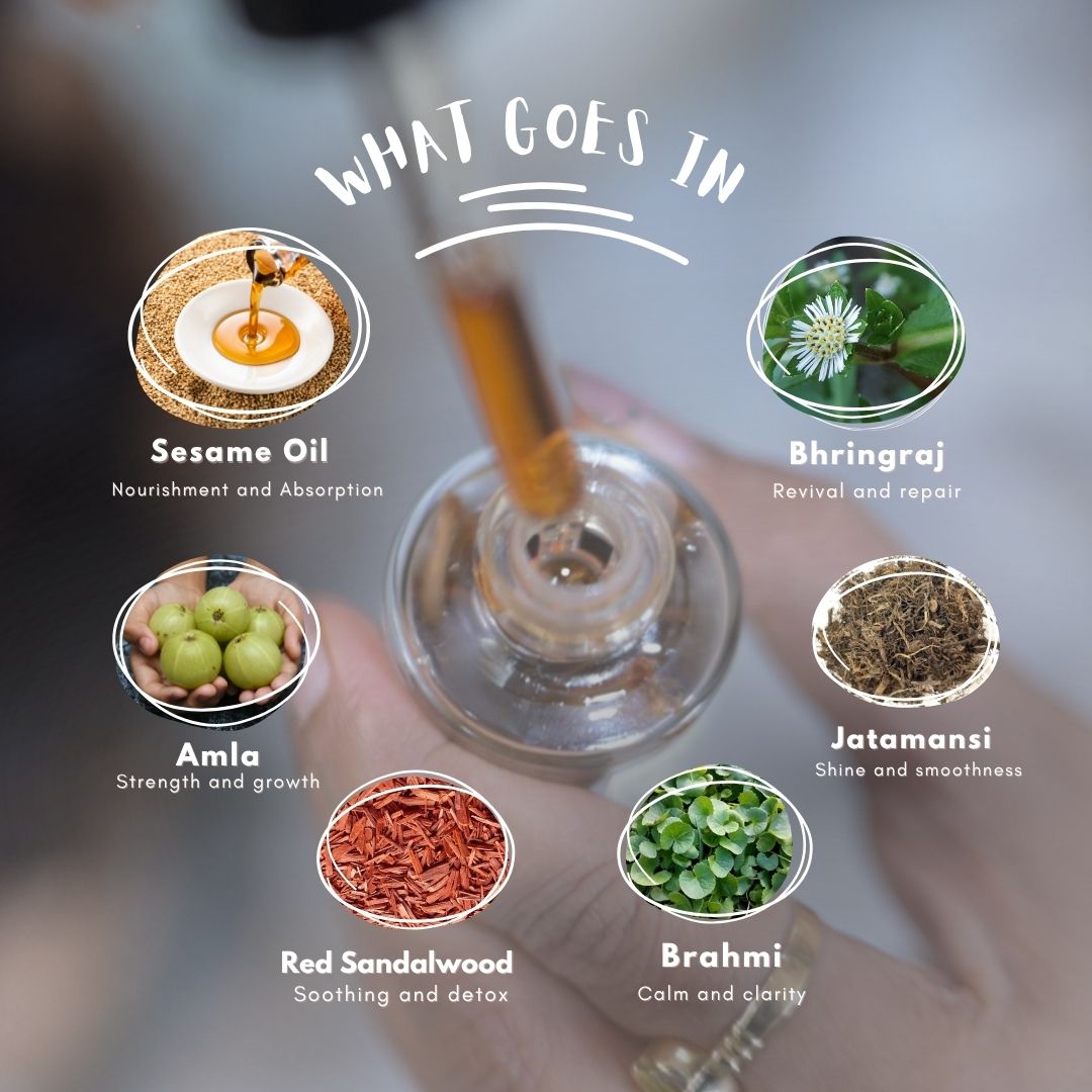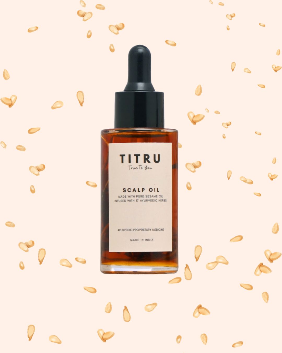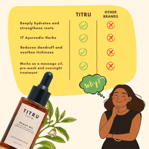 Titru Scalp Oil is your all-in-one Ayurvedic ritualfor stronger roots, healthier scalp, and hair that actually grows. Made with cold-pressed sesame oil and 17 powerful herbs, it nourishes deep, boosts blood flow, calms inflammation, and brings back your natural shine.