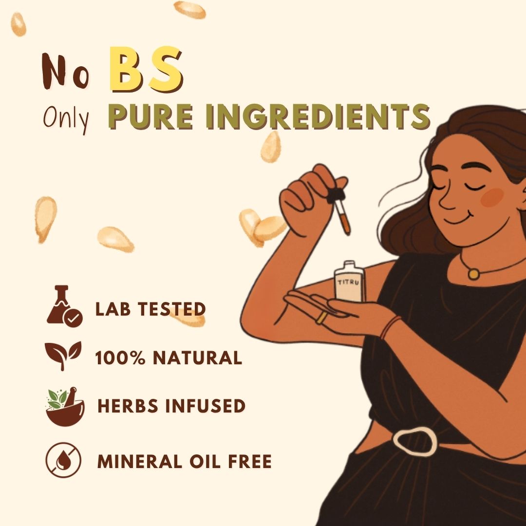 Titru is where ancient Ayurvedic magic meets modern hair goals. Think: Sesame oil, 17 powerhouse herbs, and zero fluff. We kept the rituals, ditched the drama. For hair that grows, glows, and gets compliments.