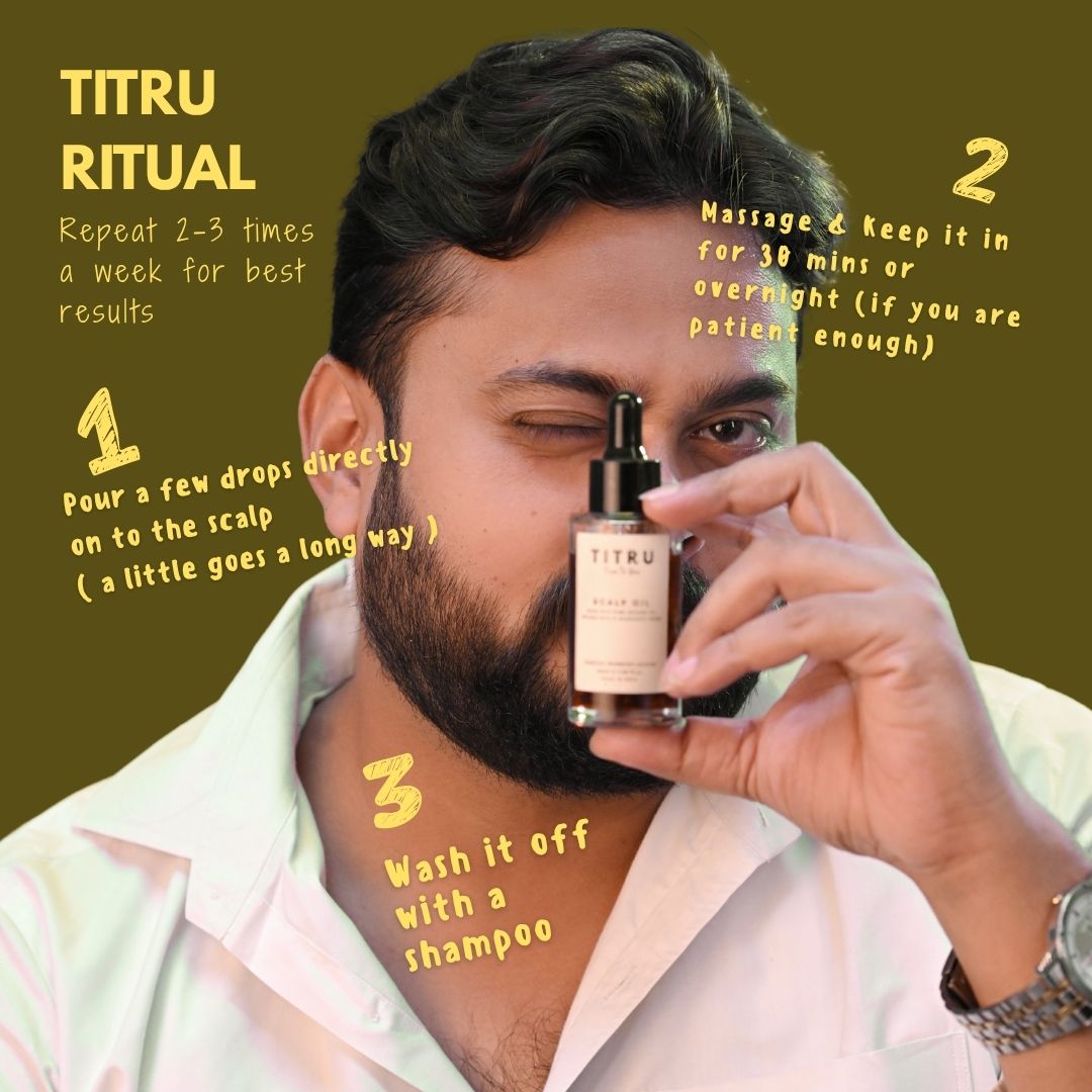 Titru was born: a one-step, no-BS, 17-herb scalp oil powered by sesame and tradition. Backed by four generations, made for the person chasing growth—in her hair and in life.